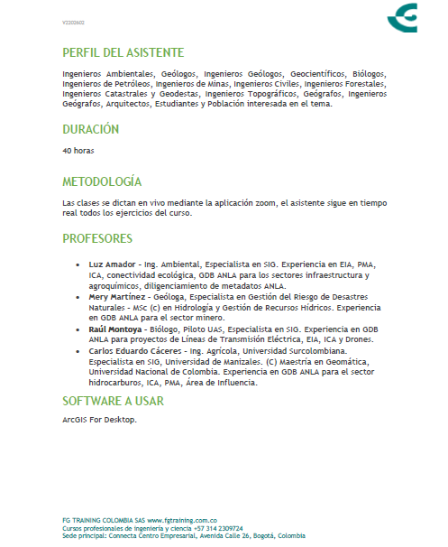 Este curso actualizado a la normatividad vigente beneficiará a los profesionales de la ciencia y la ingeniería, las empresas consultoras y las empresas operadoras al proveerles las bases teóricas y ejercicios prácticos desarrollados en ArcGIS acerca del Modelo de Almacenamiento Geográfico, el estudiante seguirá los ejercicios en vivo y podrá hacer sus preguntas que serán atendidas por un grupo de profesores con buen manejo del tema.